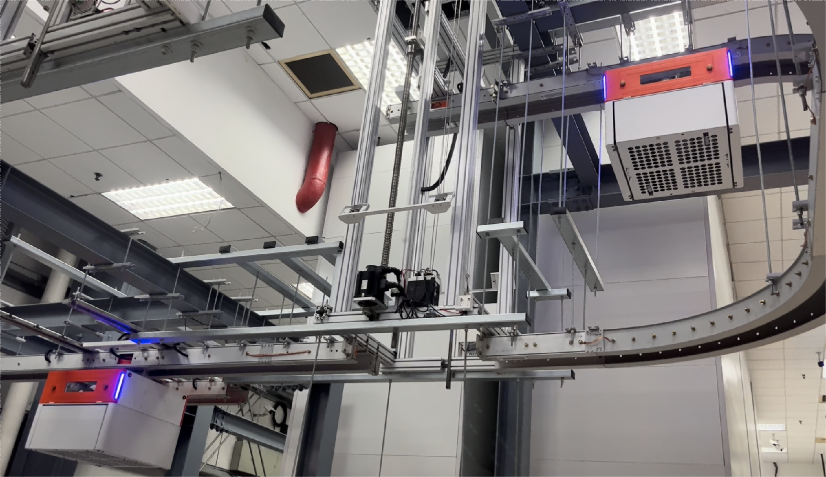 功能(néng)功效:現(xiàn)有(yǒu)→<廠(chǎng)房(fáng)升級改造,來(lái)料分(fēn)揀後通(tōng)過★≤α空(kōng)軌直線搬運至倉庫,節省搬運距離(lí)和(hé'£)人(rén)工(gōng),入庫效率化(huà)